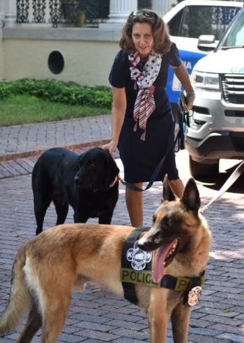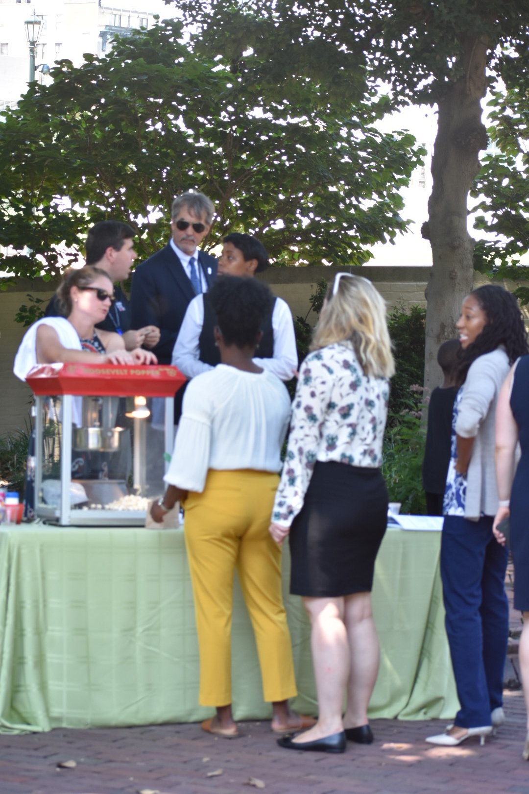 The Virginia Capitol Police held a National Night Out event at lunchtime, thanks to the generosity of Gov. Ralph S. Northam, First Lady Pamela Northam and the staff at the Executive Mansion. Visitors got to munch on popcorn, learn about crime prevention and meet some of the division's officers and K-9s.